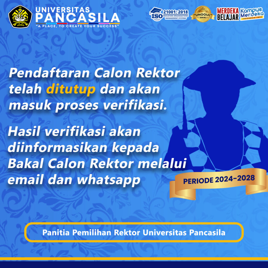Pendaftaran Seleksi Pemilihan Rektor Universitas Pancasila Periode 2024-2028 Telah Ditutup