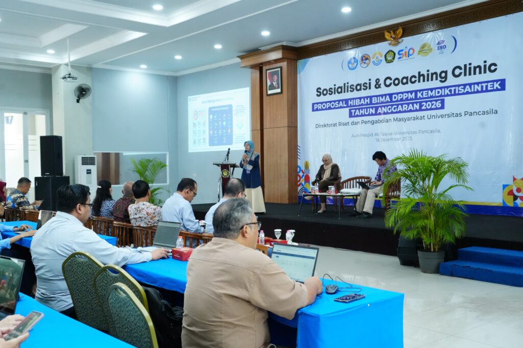 Direktorat Riset dan Pengabdian Masyarakat (DRPM) Universitas Pancasila menyelenggarakan kegiatan Sosialisasi dan Coaching Clinic Proposal Hibah BIMA Direktorat Penelitian dan Pengabdian kepada Masyarakat Kemdiktisaintek Tahun Anggaran 2026 pada Selasa, 16 Desember 2025, bertempat di Aula Masjid At-Taqwa Universitas Pancasila. Kegiatan ini diikuti oleh para dosen di lingkungan Universitas Pancasila sebagai upaya untuk meningkatkan pemahaman kebijakan serta kualitas penyusunan proposal penelitian dan pengabdian kepada masyarakat.