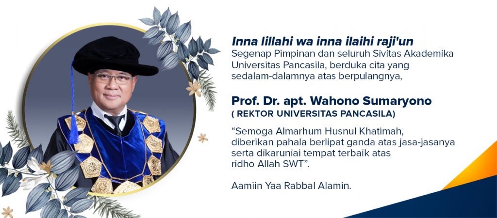 nna lillahi wa inna ilaihi raji'un Has passed away to Rahmatullah, Prof. Dr. apt. Wahono Sumaryono. Chancellor of Pancasila University for the 2014-2021 period. Prof. Wahono Sumaryono is a leader who is very dedicated to his duties. During his leadership we have been given many examples of discipline, hard work and sincere work. Even in his struggle to recover from illness, he still [...]