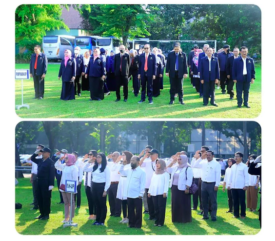 At this ceremony, the Chancellor of Pancasila University, Prof. Dr. Edie Toet Hendratno, SH., M.Si., FCBArb. acting as the supervisor of the ceremony, in accordance with the directions and decrees issued by the Pancasila Ideology Development Agency (BPIP) commemorating the Birth of Pancasila this time with the theme "Gotong Royong to Build Civilization and Global Growth".