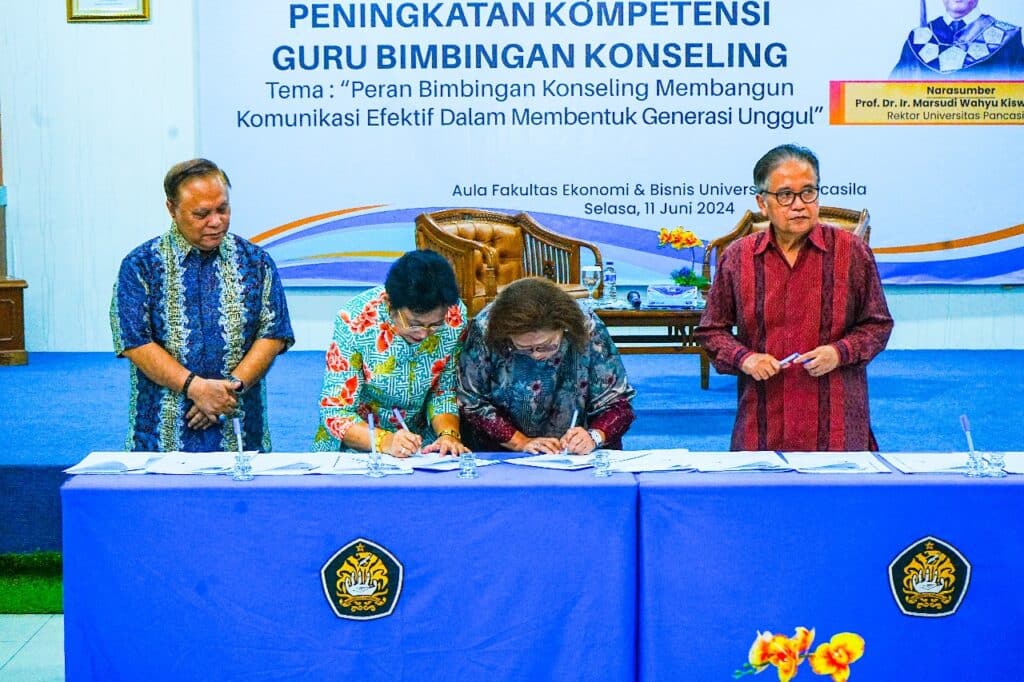 Tuesday, June 11 2024, UP is holding an event Gatherings Guidance and Counseling Teachers from the Guidance and Counseling Teachers' Conference (MGBK) at the SMA/SMK/MA level throughout Jabodetabek are located in the Hall of the Faculty of Economics and Business, UP campus, Jakarta. This activity is a means of friendship with the Counseling Guidance Teachers (BK), as well as a means of doing so sharing knowledge "The Role of Guidance and Counseling in Building Effective Communication in Forming a Superior Generation" delivered by the Chancellor of UP, Prof. Dr. Ir. Marsudi Wahyu Kisworo, IPU.